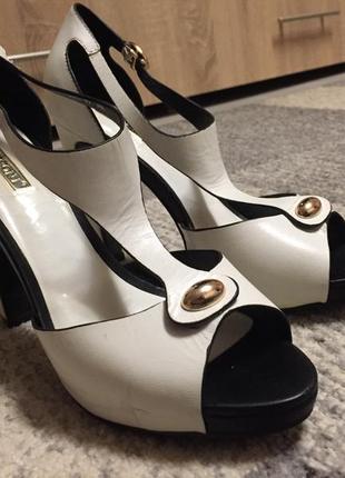 Белые кожаные туфли Basconi, обувались единожды на свадебную церемонию, размер 39. Каблук 12 см, платформа 2 см, удобные. Смотрятся великолепно.