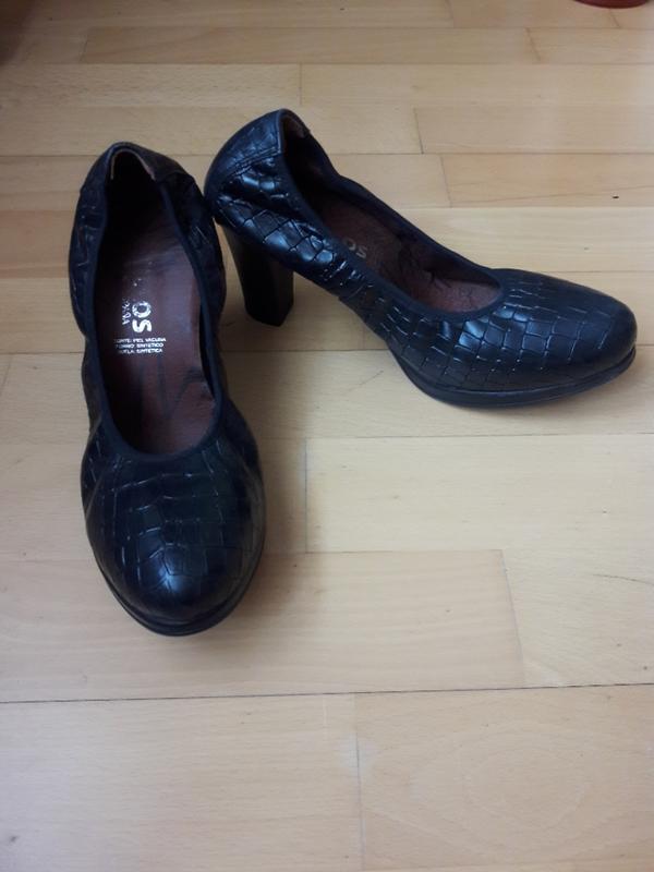 Туфли на устойчивом каблуке, Испания. Верх кожа. Платформа 1 см, каблук 8,5см, платформв 1 см. Стелька 25 см. Окантовка резинкой, подойдут на ногу любой полноты и подьема.