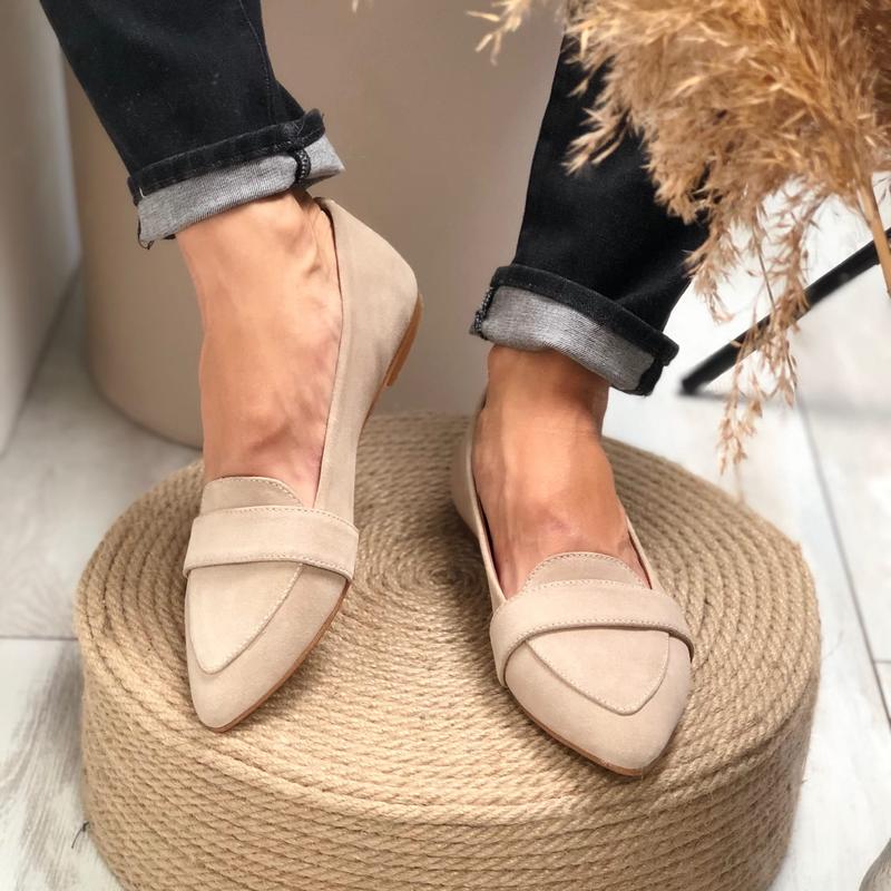 Балеки туфлі без каблука з натуральної замші , шкіри бежеві з гострим носком