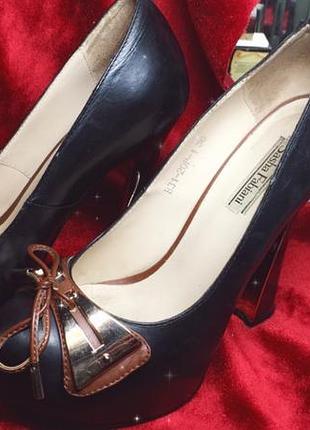 Чорні туфлі з прихованою платформою. Розмір 36. Підбори 12 см з урахуванням танкетки. Танкетка - 3 див. Шкіряні з симпатичним бантиком. Каблук оригінальний, має внутрішню золоту обробку сполучається з бантиком. А також незначні подряпини. Зручна танкетка, легені. В ремонті не були!!!