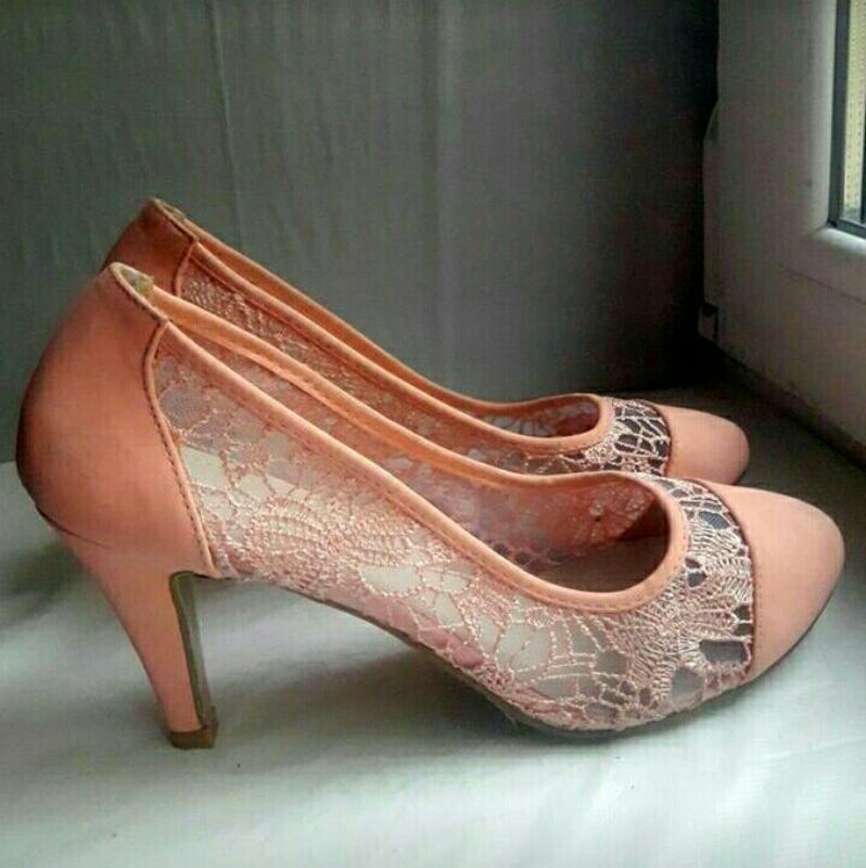 Продам ніжні літні туфельки, з кружевом, персикового кольору, їх приємний колір і вишуканий вигляд подарують вашим ніжкам гарний і доглянутий вигляд, на всі питання відповім Заміри: розмір 41, каблук 9 см, устілка 26.5 см, ширина 8.5 см, верх мереживний, підійде на широку ногу