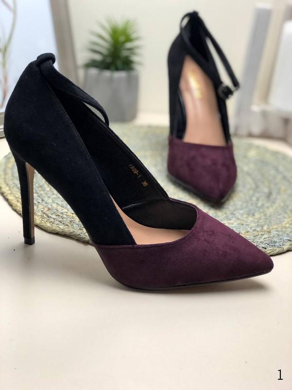 Код: 1 Туфли лодочки на шпильке бордо Размерный ряд: 36-40 Цвет: Чёрный+бордо Материал верха : эко замша Материал внутренний: эко кожа Высота каблука: 10 см размер в размер 36-23,5 см 37-24 см 38-24,5 см 39-25 см 40-25,5-26 см
