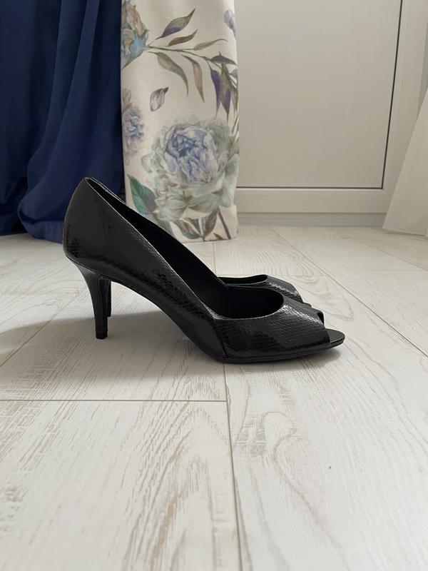 Туфли чёрные, с открытым носом,12 размер США , каблук 8 см, стелька от края до края 29 см , мягенькие .Подойдут широкую ножку. Состояние идеальное.