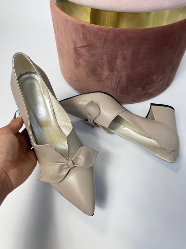 Эксклюзивные туфли из натуральной итальянской кожи бежевые с бантиком женские