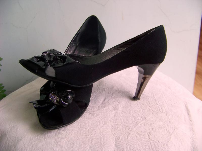 Есть видео!!! Классические туфли-лодочки с открытым носком. ТМ welfare, размер указан 39, длина стельки 25.5 см. Выполнены из натуральной мягкой замши, внутри кожа, украшены лакированным бантом и пряжкой со стеклянными стразами. Каблук шпилька 7.5 см, с металлической вставкой, каблук и колодка удобные. Ширина в самом широком месте подошвы 8.5 см. Одевались пару раз, практически как новенькие. Следы носки только на подошве немножко, сзади каблук, можно элементарно подкрасить.