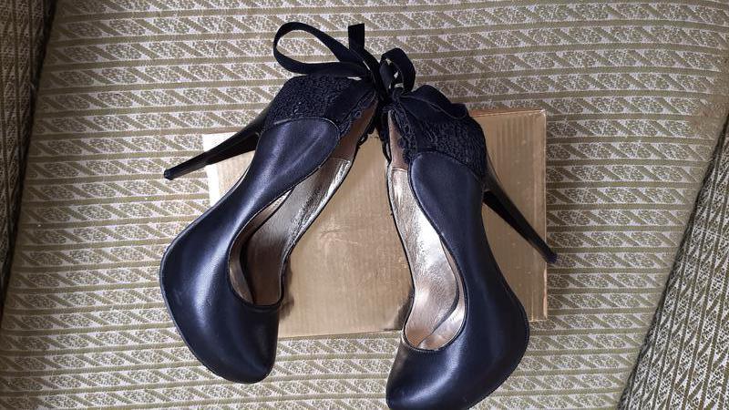 Туфли на ножку 35-36р,сзади декорированы кружевом и бархатным бантиком.Состояние на фото