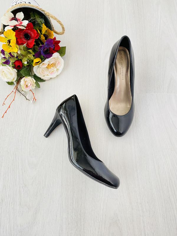 лакові туфельки. Розмір вказано 5 Довжина стельки 25 ,висота каблука 7,5см На вузьку або на середню полноти ножку Без дефектів е легкі коцки на каблуках, на фото попыталась передать. Удобні устойчиві аккуратно смотрится на ножке ..