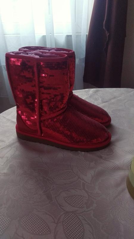 Сапоги UGG Оригинал, новые, 37 размер, натуральная плотная овчина, есть небольшой недостаток, не достает пайеток, на фото видно, подошва eva, покупали в Англии, на сайте стоят более 6000