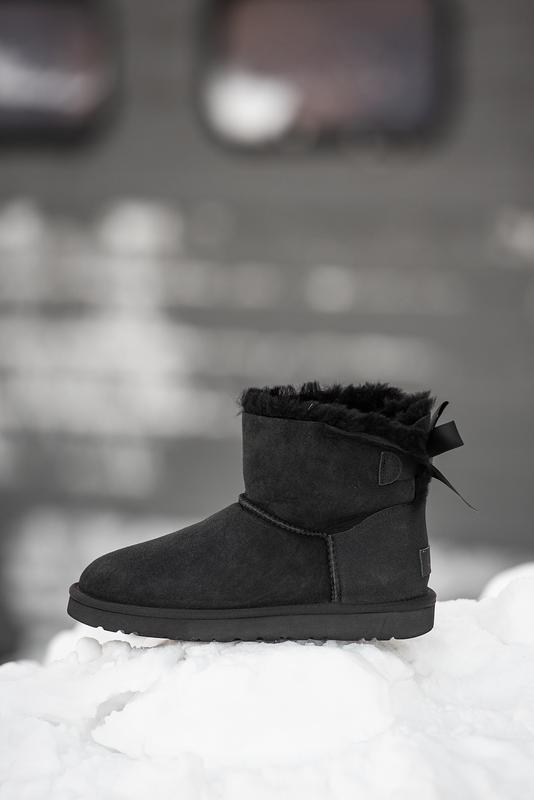 Замшевые женские угги мини с бантом, ugg classic mini bailey bow. черные, овчина. премиум