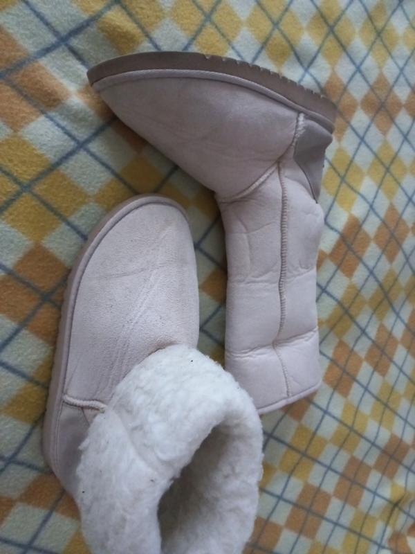 Выполнены из искусственной замши, утеплены искусственным мехом. Высота от подошвы 30см, можно носить регулируя высоту. Нюанс на останньому фото. Длина стельки 25.