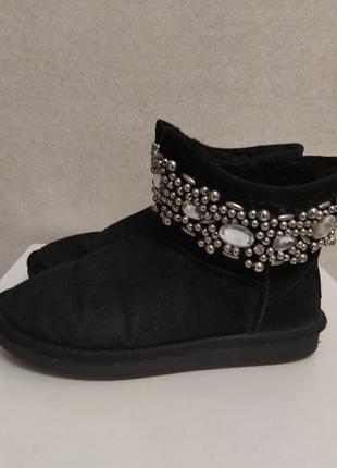 Зимові уггі. Розмір 37. Довжина устілки 23,5-24 см. Стан хороший, але є дефект, який видно на 7 фотографії (маленька дірка) та почала облазити фарба на перлинах. Колір: чорний, як на фото. Сезон: зима. Матеріал верху: натуральна замша. Матеріал підкладки: натуральне хутро овчини. Купувались набагато дорожче. Неймовірно гарні, стильні, модні, зручні та дуже теплі.