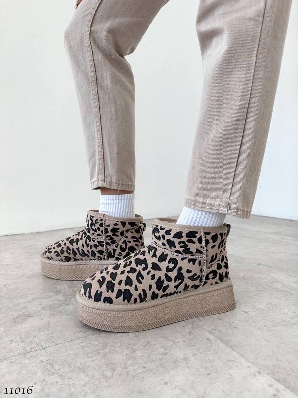 ▫Новинка в наличии▫ Код 11016 Угги с лео принтом цвет: светлый лео НАТУРАЛЬНАЯ ЗАМША с принтом ЛЕО внутри: набивной мех высота от пятки 8 см, подошва: спереди 3,5 см/4,5 см, Производитель - КНР 36= 23,5 см 37= 24 см 38= 24,5 см 39= 25,5 см 40= 26 см Вес 36 р= 880 г