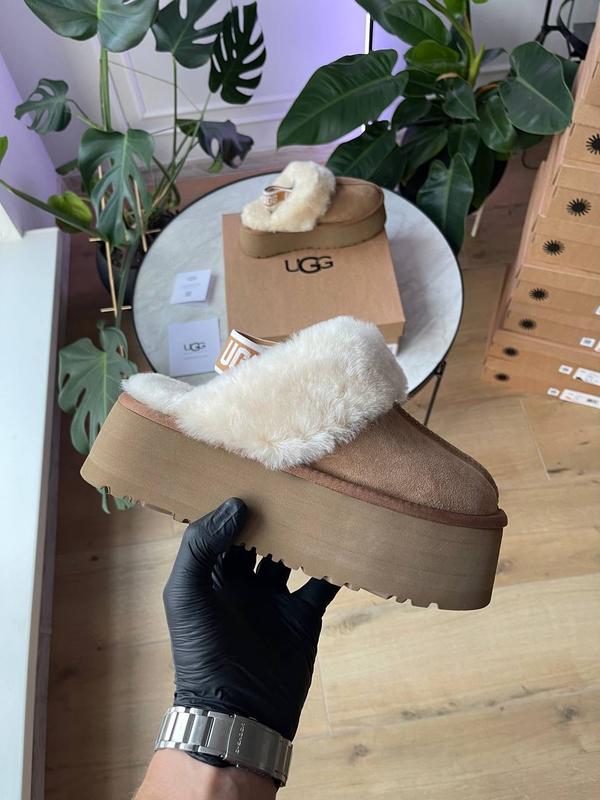 UGG Funkette Slipper Platform Chestnut • Материал ♡ Верх: натуральная замша ♡ Внутри натуральная, цельная овчина по всей длине ♡ Стелька натуральная овчина ♡ Каждая пара обработана водоотталкивающим составом, который предотвращает впитывание влаги ♡ Подошва: EVA (не скользит, холод не пропускает) • Производитель: Вьетнам 🇻🇳 (по факту Китай) • Комплект: ♡ Сертификат и паспорт ♡ Водяные знаки и QR-код ♡ Коробка со всеми наклейками и упаковочная бумага ♡ Пакетик Ugg • Размеры: 36-41 (36-22,5 см; 37-23,5 см; 38-24 см; 39-25 см; 40-25,5 см; 41-26 см) • Арт 1122 цена: 4499 грн