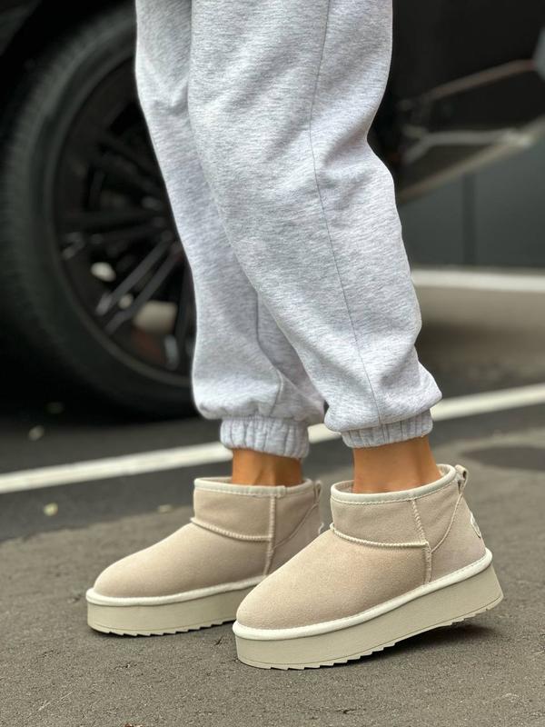 Бежевые угги на утолщенной подошве угги. зимние угги уга замшевы