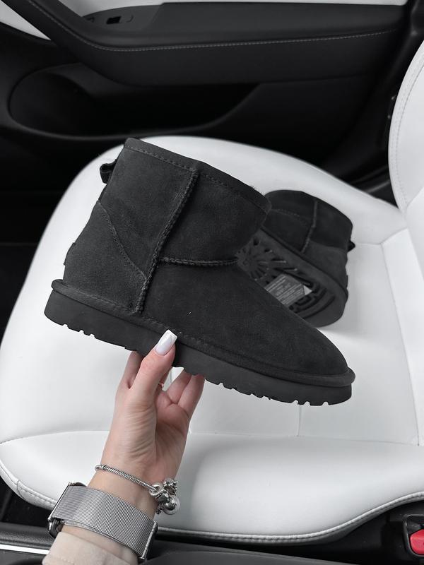 UGG MINI BLACK 📝#art0211 📝 Верх : натуральна замша 📝 Всередині натуральна ,цільна овчина по всій довжині 📝 Устілка з натуральної овчини 📝 Кожна пара оброблена водовідштовхуючою рідиною, що запобігає промоканню. 📝 Підошва : EVA (суцільна, мʼяка, не пропускає холод) 📝 Комплектація: чорна коробка UGG, наліпки, QR, пакувальний папір UGG, книжечка та картонна візитівка Розмірна сітка: 36-23 см 37-23.5 см 38-24.5 см 39-25 см 40-25.5 см