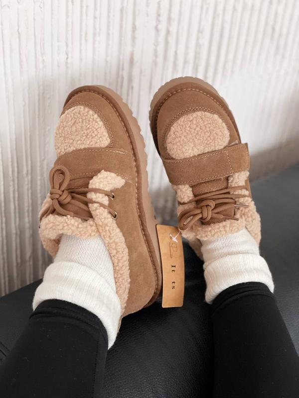 Рыжие угги-автоледи из натуральной замши на шнуровочке и липучку с бежевым барашком утепле...