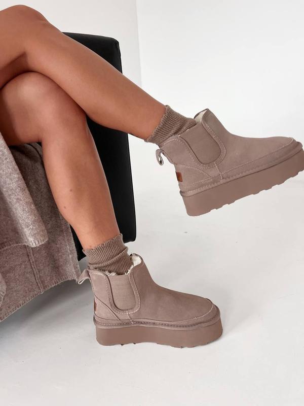 Серо-бежевые угги на резинках по бокам из натуральной замши на высокой подошве Сезон: зима (штучне густе хутро) Платформа: 4 см Высота: 12 см ( до пятки) 36 - 23,5 см 37 - 24 см 38 - 24,5 см 39 - 25 см 40 - 25,5 см 41 - 26 см . Код 9815 .