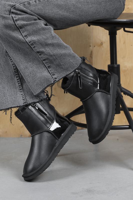 UGG ZIP MINI BLACK LEATHER LACQUER 2 ZIP 📝#art1099 📝 Верх: натуральная кожа 📝 Внутри: натуральная,цельная овчина по всей длине 📝 Стелька из натуральной овчины 📝 Каждая пара обработана водоотталкивающей жидкостью, предотвращающей промокание. 📝 Подошва : EVA (суцельная, мягкая, не пропускает холод) 📝 Комплектация: черная коробка UGG, наклейки, упаковочная бумага UGG, книжечка и картонная визитка 36-23 см 37-23.5 см 38-24.5 см 39-25 см 40-25.5 см