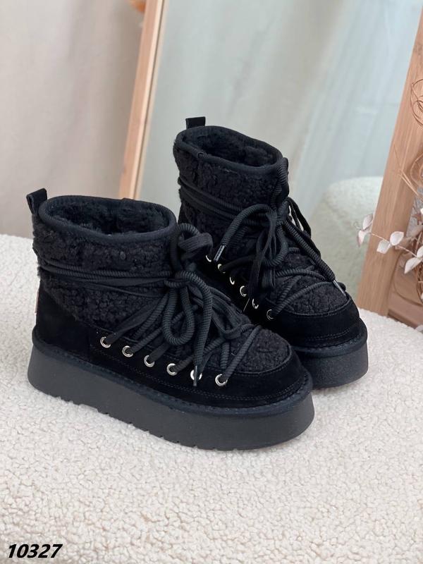 Код 10327 Угги Материал натуральная замша Цвет черный Сезон зима Внутри эко мех Высота обуви от пятки 13 см Высота подошвы сзади 4,5 см Высота подошвы спереди 3,5 см Декоративная шнуровка 🛒Размер по сетке: 36 - 23,5 см 37 - 24,0 см 38 - 24.5 см 39 - 25,0 см 40 - 25,5 см