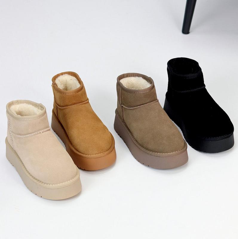 Код 23268 Размеры 37-41 Уггі "Alia" Материал - НАТУР.ЗАМША Внутри - НАТУР.ХУТРО Сезон - Зима Цвет - в ассортименте Высота от пятки - 8,5см Подошва - 4см/3см Производитель - Фабричный Китай На среднюю стопу Размер в размер 36-23,5 37-24 38-24,5 39-25 40-25,5 1800