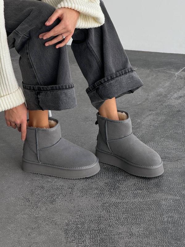 ▫Пополнили размеры▫ Код 11680 Базовые угги средней высоты цвет: светлый СЕРЫЙ НАТУРАЛЬНАЯ ЗАМША внутри: натуральный мех (в составе 70% шерсти) натуральная стелька высота от пятки 12 см подошва: спереди 3,5см/ 4,5 см материал подошвы - EVA пена Производство - КНР (без коробки) 37= 23,5 см 38= 24 см 39= 24,5 см 40= 25 см 41= 25,5 см Вага 37р = 600 г. 1690грн