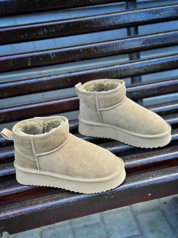 Женские угги Цвет: хаки Материал: НАТУРАЛЬНАЯ ЗАМША Внутри: набивной мех Высота от пятки: 9см Подошва: 3,5-4,5см 36р.-23,5 см 37р. - 24см 38р. - 24,5см 39р. - 25см 40р. - 26 см