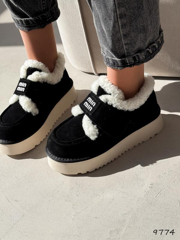 Угги женские черные / черные угги с белой опушкой / угги зима