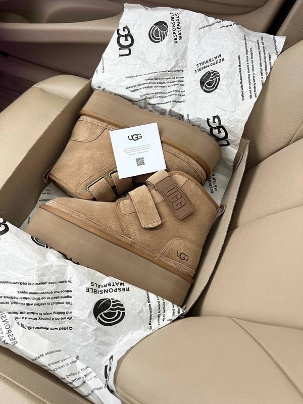 UGG Neumel Platform Camel материал замша внутри мех овчина подошва термостойкая пена бренд упаковки