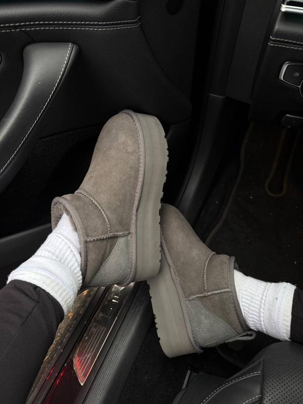 Ugg ultra mini platform grey — жіночі зимові уггі на платформі • натуральна замша та овчин...