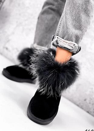 💖Угги Материал: натуральная замша Цвет : черный ✨Подошва: 2,5 см, впереди: 1,5 см ✨Высота от пятки: 12,5 см Внутри: эко мех Опушка: натуральный песец 💥Размеры: 36-23,5 см 💰Цена: 1250 грн💰