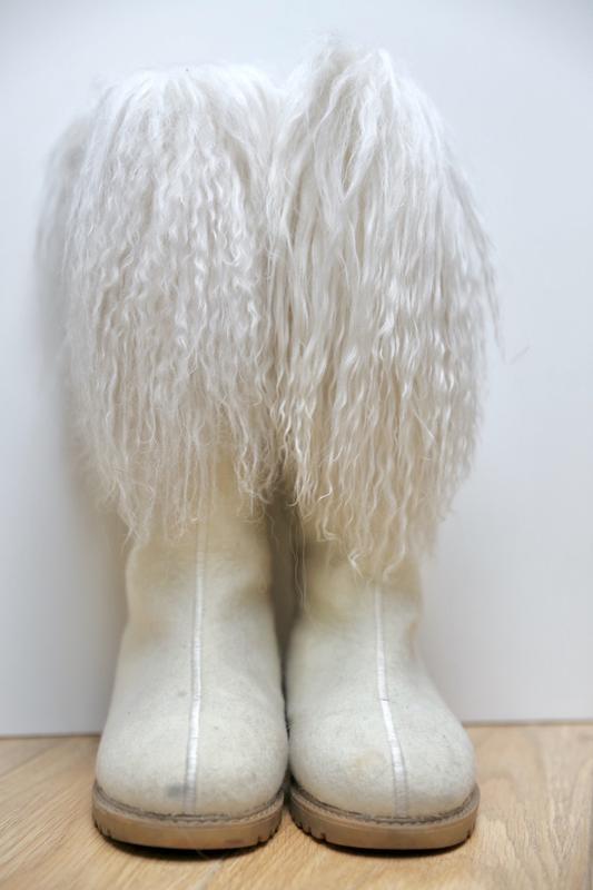 Натуральные валенки. Шерсть ламы прикрашена в целом образ. Размер 39. Стелька 25,5 см. Подошва и отделка очень качественные. Теплые, комфортные и стильные.