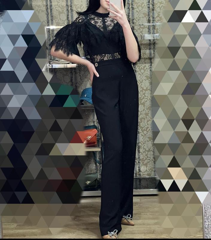 Невероятно стильный ,нарядный ,брючный комбинезон с кружевом на талии и плечах, турция,люк...