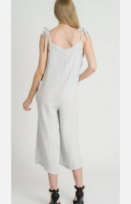 Комбинезон ромпер льняной. Италия.. сток стана новый. Размер М - L. Длина без бретелей 108 см. ПОГ 52 см. ПОТ 55 см. ПОБ 61 см. длина внутренней стороны клешни 55 см. ПО клешни 37 см