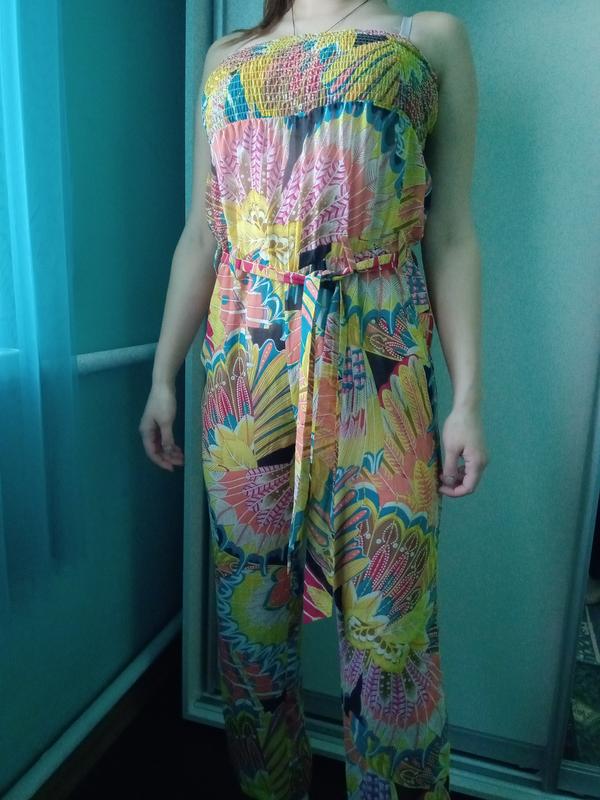 Шифоновый брючной комбинезон с поясом открытые плечи