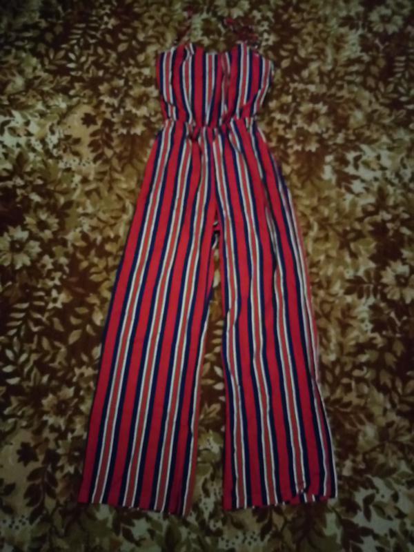 Бомбезный брючный комбинезон из крепового софта в полоску бренд ivivi
