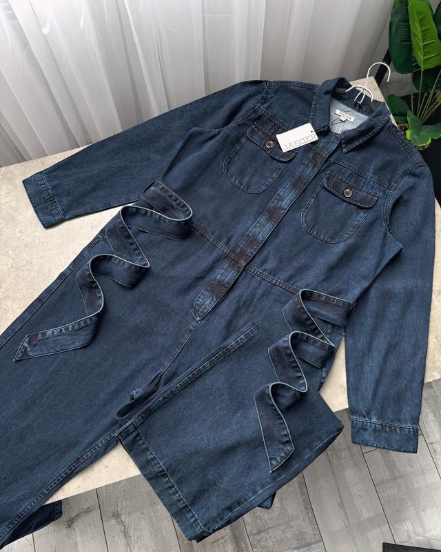 Джинсовий комбінезон від J A E G E R Номер: 2576 Стан: ідеальний з етикеткою Розмір: 16/L Заміри пів обхват: Груди: 61 тягнеться до 62 см Плечі: 44 см Рукав: 64 см Пояс у спокійному стані: 55 см Пояс в натяжку: 56 см Стегна у спокійному стані: 63 см Стегна в натяжку: 65 см Обхват стегна: 37-38 см Довжина: 162 см Від поясу до низу: 112 см За внутрішнім швом: 77 см Посадка спереду: 34 см Ширина калоші: 27 см Ширина гомілки: 29 см