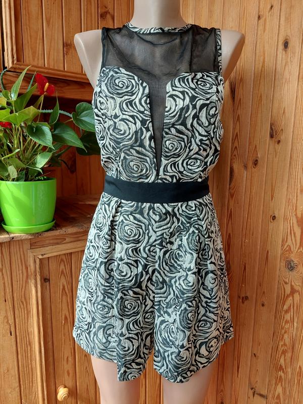 Новий або стан нової речі р М комбінезон з шортами дуже модний принт фірмова річ квіти не білі, це ніби трохи з блиском тканина, нитка, святковий комбінезон
