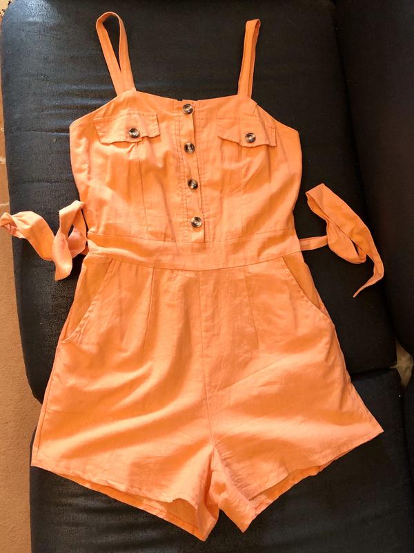 Ромпер на дівчинку/дівчину помаранчового кольору. Тканина натуральна. Довжина від плеча 78 см; ширина таліі 36 см ( позаду на резиночці); ширина стегон до 50 см; ширина по грудях до 42 см ( на спинці також резинка). Важливо!!!! В призначенні платежу писати - Компенсація вартості за вживану річ.