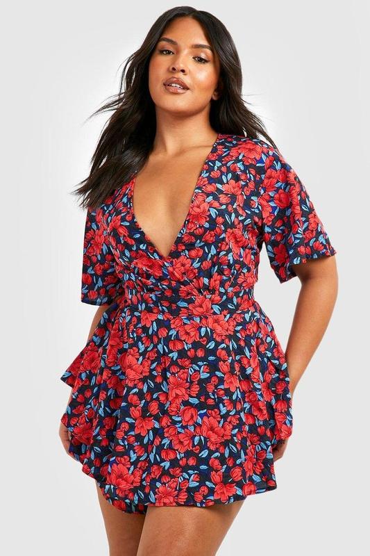 Ромпер -мини платье приталенное с запахом принт тюльпаны/платье с шортами