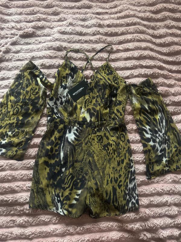 Комбінезон шорти, ромпер сукня шифон змія пітон леопард відкриті плечі