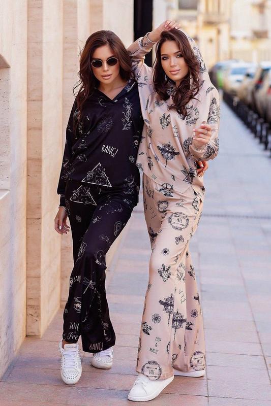 Костюм, фото реал✅ ⠀ ✅ Видео обзор скина у Вайбеp ▫️Размеры: 42-44, 46-48( разм сетка на фото) ▫️Кольори: як на фото ⠀ Костюм свободного кроя из трикотажа с уникальным принтом. Кофта с капюшоном. Рукава с манжетами. Спинка удлинена. ⠀ Модель 1-724 ‼️Безопасной оплаты нет, накладной платеж с подпиской!!️ 👌🏽Доставка 2-4дны 👌🏽Есть обмен размера
