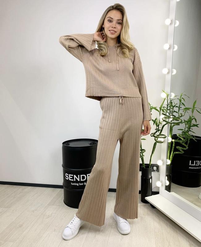 Стильный вязаный костюм топ и брючины палаццо