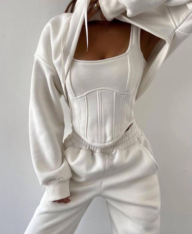 Костюм ТРОЙКА😊 ▪Код товара: 752 IS ▪️ Цена: 950 грн ▪Ткань: трехнитка на флисе ▪Цвета: черный, меланж, розовый, молочный ▪Размер: S-М;М-L Параметри виробу на S-M: Длина изделия-32 Длина рукава-72 Длина шта: Внешний-100 Внутренний-73 ОГ-110 ОТ-62-100 ОС-102 Топ Длина от плеча до низа-50 Ог-90-100 От-77-88 Штани+корсет+кофта🔥Корсет на спинке регулируется по объему лентой. Всё как на фото🔝 Есть наложенный платеж с подпиской✅