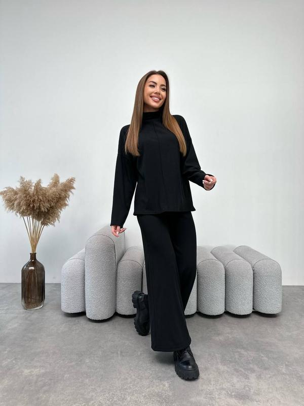 Костюм из ангоры кофта свободного кроя с высоким воротником под горло брюки палаццо широки...