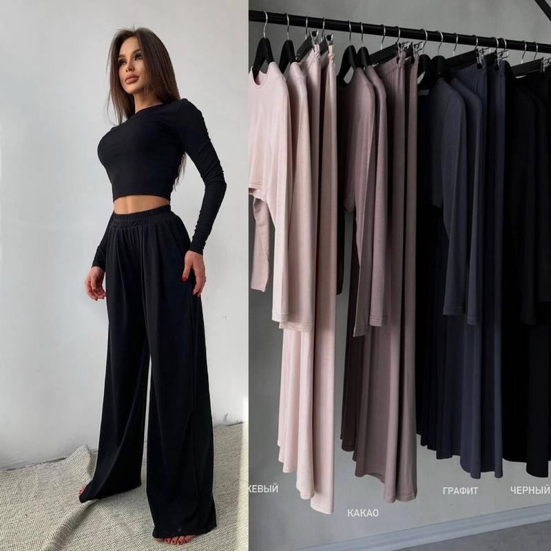 Женский костюм - кроп топ укороченный лонг и широкие брюки палаццо свободного кроя