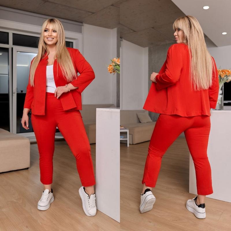 Супер стильнии брючний костюм трійка до 58 розміру Розміри : 48-50 52-54 56-58 Колір: чорний, синій, сірий, ізумруд, мокко Тканина костюм :двонитка гарної якості, майка: 100% бавовна Супер стильнии жіночий костюм призначении для тих, хто віддає перевагу модному і якісному одягу! Костюм складається з класичного однобортного піджака і штанів з високою посадкою , плюс майка (яку можно носити окремо) Костюм виглядає стильно та поєднується з будь-яким взуттям, його можна носити як разом так і поєднувати з іншими речами ер