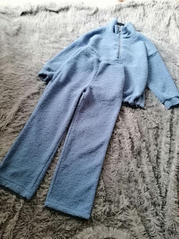 Крутой стильный плюшевый костюм мех тедди барашек длинные широкие брюки палаццо кофта овер...