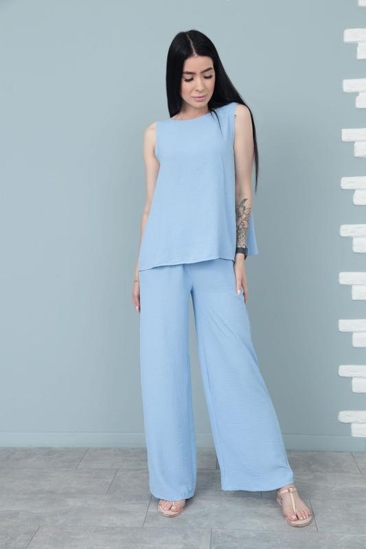 💫ЛЕГКИЙ, КОМФОРТНЫЙ, СТИЛЬНЫЙ💫 Арт.: 7117 ✅Легкий, воздушный материал ✅Можно носить пуговицами спереди и сзади ✅Трендовые широкие брюки и свободная майка размеры: Голубой 42-44, 46-48, 50-52 Графит 42-44, 46-48, 50-52 Хакі 42-44, 46-48, 50-52 Темно-синий 42-44, 46-48,50-52 Материал: креп-жатка ✔️ wow