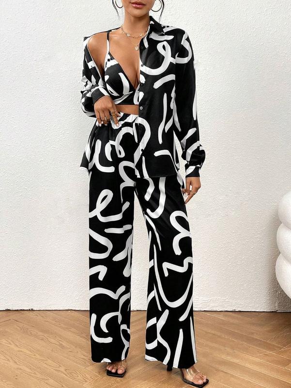Костюм рубашка свободного кроя рубашка с длинными рукавами топ на тонких бретелях укорочен...