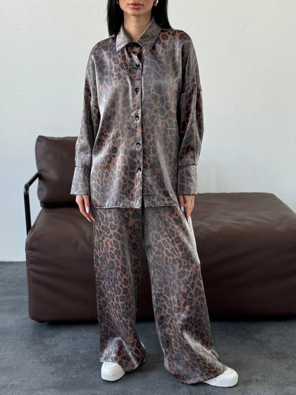 Костюм Лео с блеском 🐆 Брюки свободного кроя с карманами и рубашка оверсайз с высоким манжетом 🌪️ ▪️размер: one size (подойдет на параметры 42-48) ▪️цвет: шоколад, серый (принт Лео) ▪️ткань: коттон шелк кресталл ▪️модель: 180 ▪️цена: 1000 грн